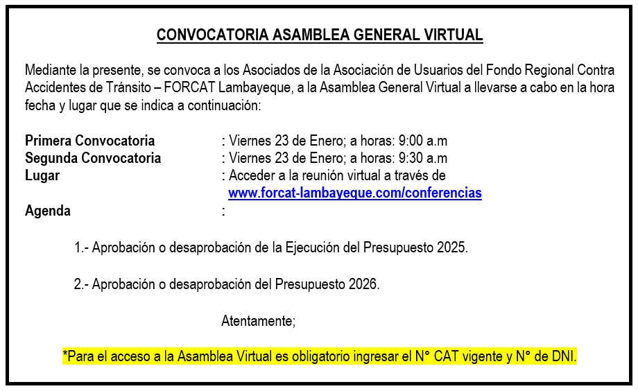 El conductor del vehículo, deberá informar a la Policía Nacional del Perú y AFOCAT, así se le atenderá de inmediato, trasladándolo al establecimiento de salud público o privado más cercano.