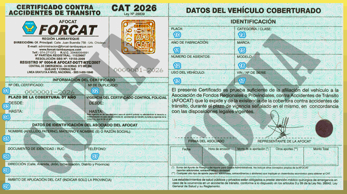 | 17 | VIN / N° de Serie | VIN / N° de Serie del Vehículo |